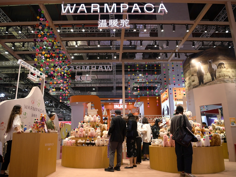 這是11月5日在上海拍攝的第七屆進博會秘魯“溫暖駝”展臺。今年,秘魯品牌“溫暖駝”連續(xù)第七年亮相進博會,受到更多中國消費者的喜愛。新華社記者 金馬夢妮 攝