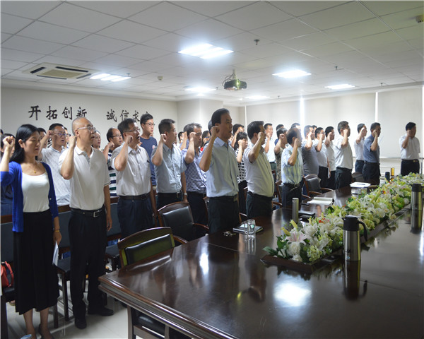 會議進(jìn)行第一項(xiàng),全體人員起立,唱國歌。嘹亮高昂的義勇軍進(jìn)行曲響徹整個(gè)會議室、整個(gè)集團(tuán)公司,歌聲振奮同志們的意志,更加堅(jiān)定了對黨的信仰。