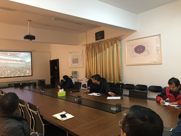 文博中心項(xiàng)目部:利用有限場地,通過直播平臺或手機(jī)端組織員工收看會議盛況。