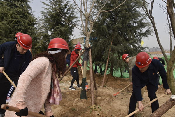 一到植樹現(xiàn)場,所有黨員干部都拿著鐵鍬,三四人一組,有的扶苗,有的培土,有的踩實,有的澆水,大家都充滿激情,鼓足干勁,相互配合,栽下一株株樹苗,植下一片片新綠,現(xiàn)場呈現(xiàn)出一片熱火朝天的勞動場景。為確保新樹栽種的成活率,專業(yè)人員在植樹現(xiàn)場進行技術指導,確保做到保質(zhì)、保量、保成活。經(jīng)過不到兩個小時的努力,雪松、白玉蘭、金枝槐、紅碧桃等43棵樹木全部栽種完成。